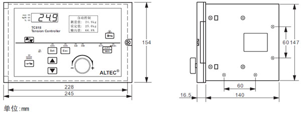 TC818張力控制器可采用水平安裝、立面安裝或屏式開孔安裝方式: